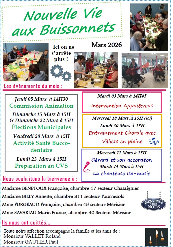 L’EHPAD Les Buissonnets, souhaite garder l’esprit d’une maison ouverte à tous, accueillante, animée du souci d’un bien être dans une atmosphère de sérénité et de soins attentifs. En parcourant ce site et en y découvrant nos différents services et projets, vous apercevrez que toutes nos équipes, les bénévoles et les membres du Conseil d’administration partagent ce désir d’accompagner vos proches et espèrent répondre à vos attentes.